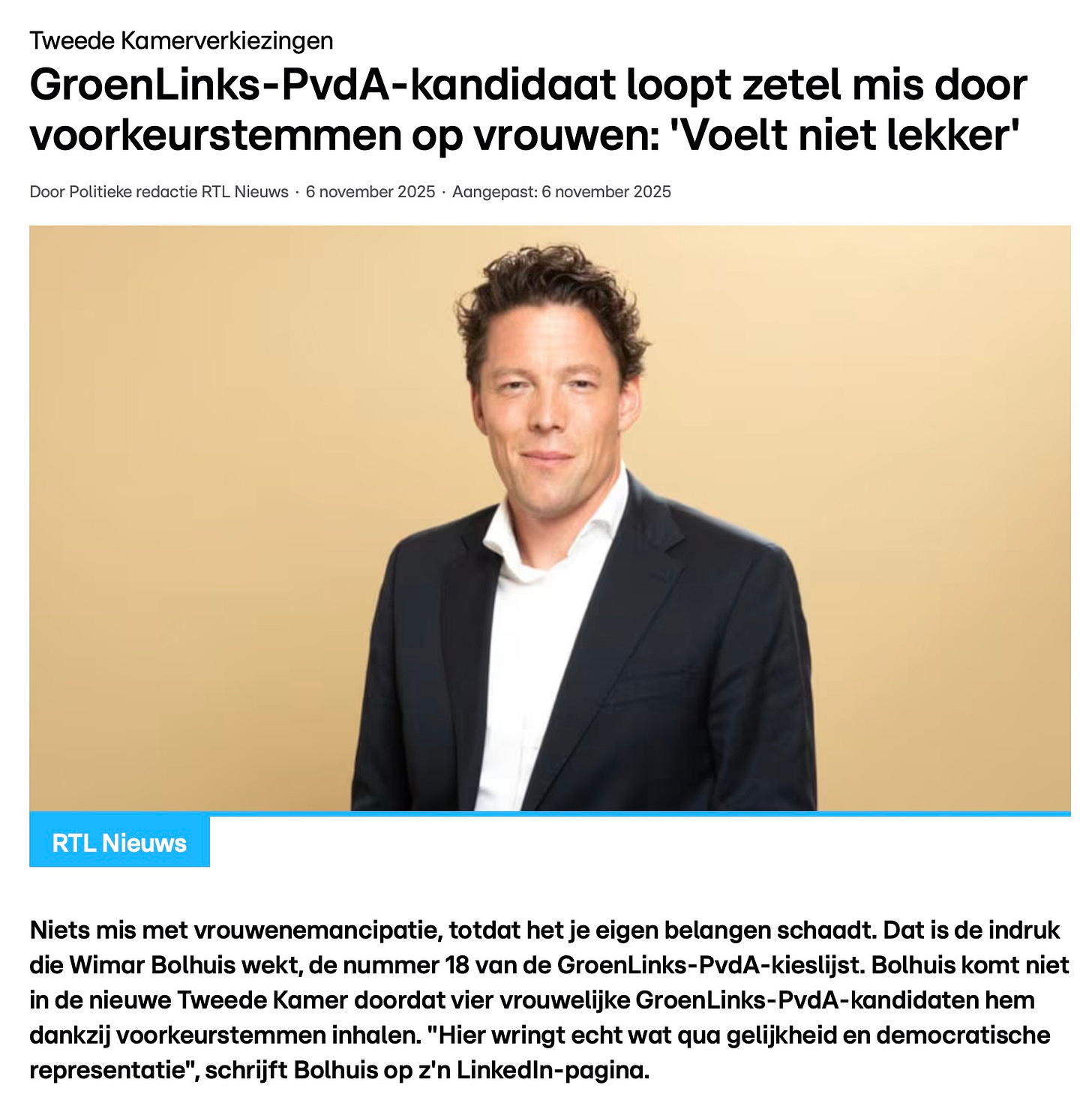 Nederland doet graag alsof belangenvertegenwoordiging en politieke neutraliteit probleemloos naast elkaar kunnen bestaan (‘door kennis van zaken is het juist een goed Kamerlid!’) maar in de praktijk schuurt het toch een beetje als iemand met een melkveebedrijf landbouwwoordvoerder wordt. Zeker omdat bij een klassieke middenpartij zoals het CDA niemand ook maar een wenkbrauw fronst, terwijl een partij zoals BBB eerder de wind van voren kreeg omdat ze met een fractie vol boerenbelangen landbouwbeleid ging controleren en vormgeven. Toen was er volop mediakritiek voor de schijn van zelfbediening.