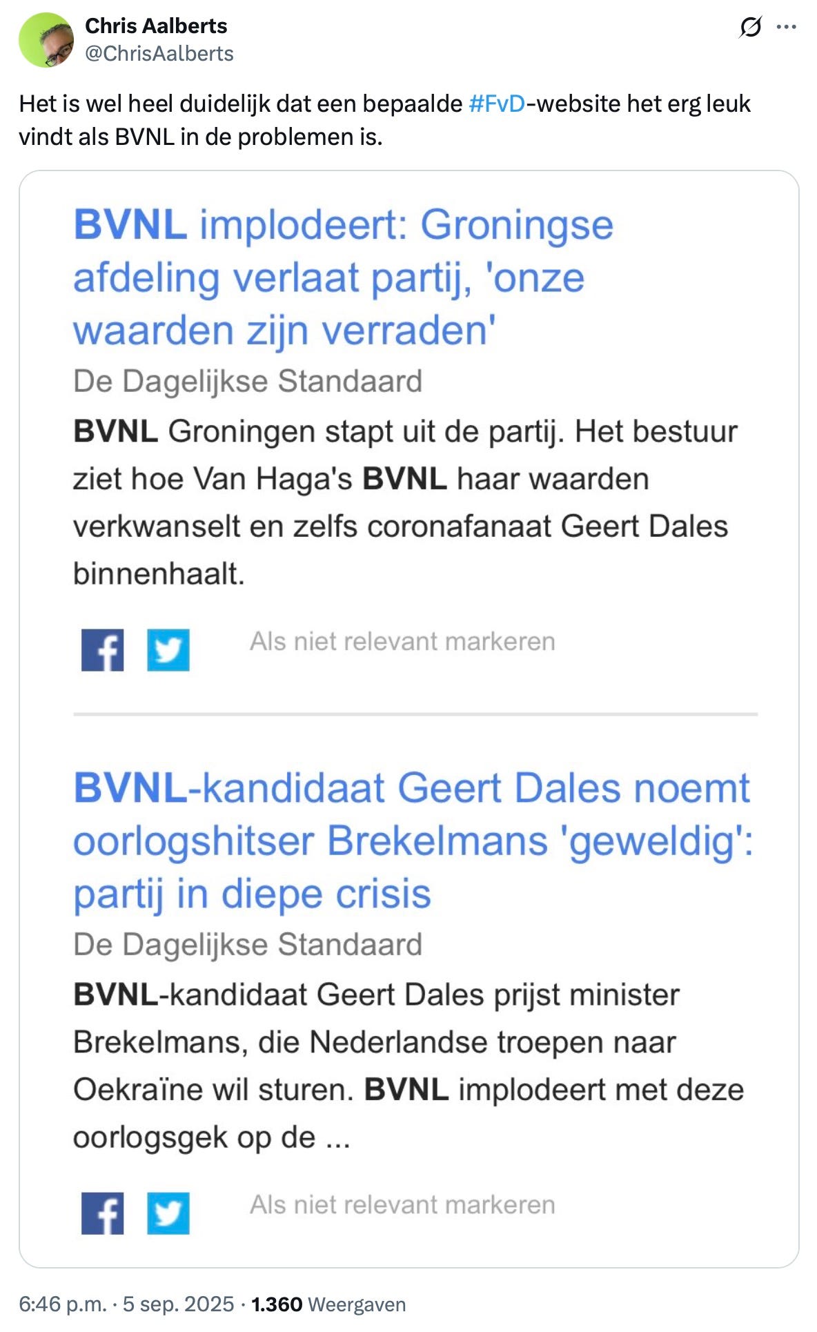 Als Annabel Nanninga vertrekt uit de Eerste Kamer wordt haar stoeltje gevuld door oud FvD’er Toine de Beukering, maar dat is geen JA21’er want hij kreeg juist mot met Annabel Nanninga naar haar afsplitsing. Zelf splitste hij ook af en probeerde een groep getiteld ‘Gezond Verstand’ op te zetten. Dat zette geen zoden aan de dijk maar gelukkig was hij ook al lid van Hart voor Den Haag, de lokale partij van Richard de Mos. De Mos (oud PVVer) was op zijn beurt weer persvoorlichter van BVNL, de Forum-afplits club van Wybren van Haga. Aalberts: ‘Nou en ondertussen zit Richard de Mos voor BVNL in het Hoogheemraadschap van Delfland, die is daarbij geholpen voor Ralf Sluis die dan weer zelf in het dagelijkse leven beleidsmedewerker bij BBB is in de Tweede Kamer, snap jij het nog?’.