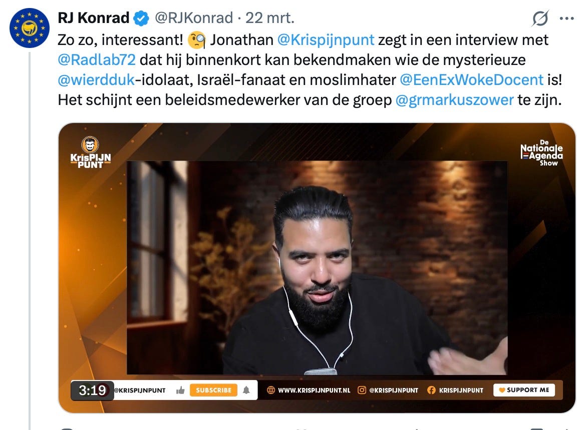 En terwijl D66 langzaam opschuift richting populistische partijcommunicatie, zijn ze op de radicaalrechtse flanken alweer een paar stations verder. Zo hadden twee PVV-Kamerleden (Maikel Boon en Patrick Crijns) vorig jaar een zogenaamd ‘spontane’ PVV-fanpagina op Facebook opgezet en plaatste daar massaal haatzaaiende AI-beelden, onderzocht door De Groene Amsterdammer en de Data School van de Universiteit Utrecht. Of wat te denken van X-account ‘Ex Woke Docent’ die zich presenteert als een onafhankelijke twitteraarster met maatschappelijke observaties (inclusief mijmeringen over een moslim-rein Nederland) in plaats van de Haagse partijmedewerkster die het is?